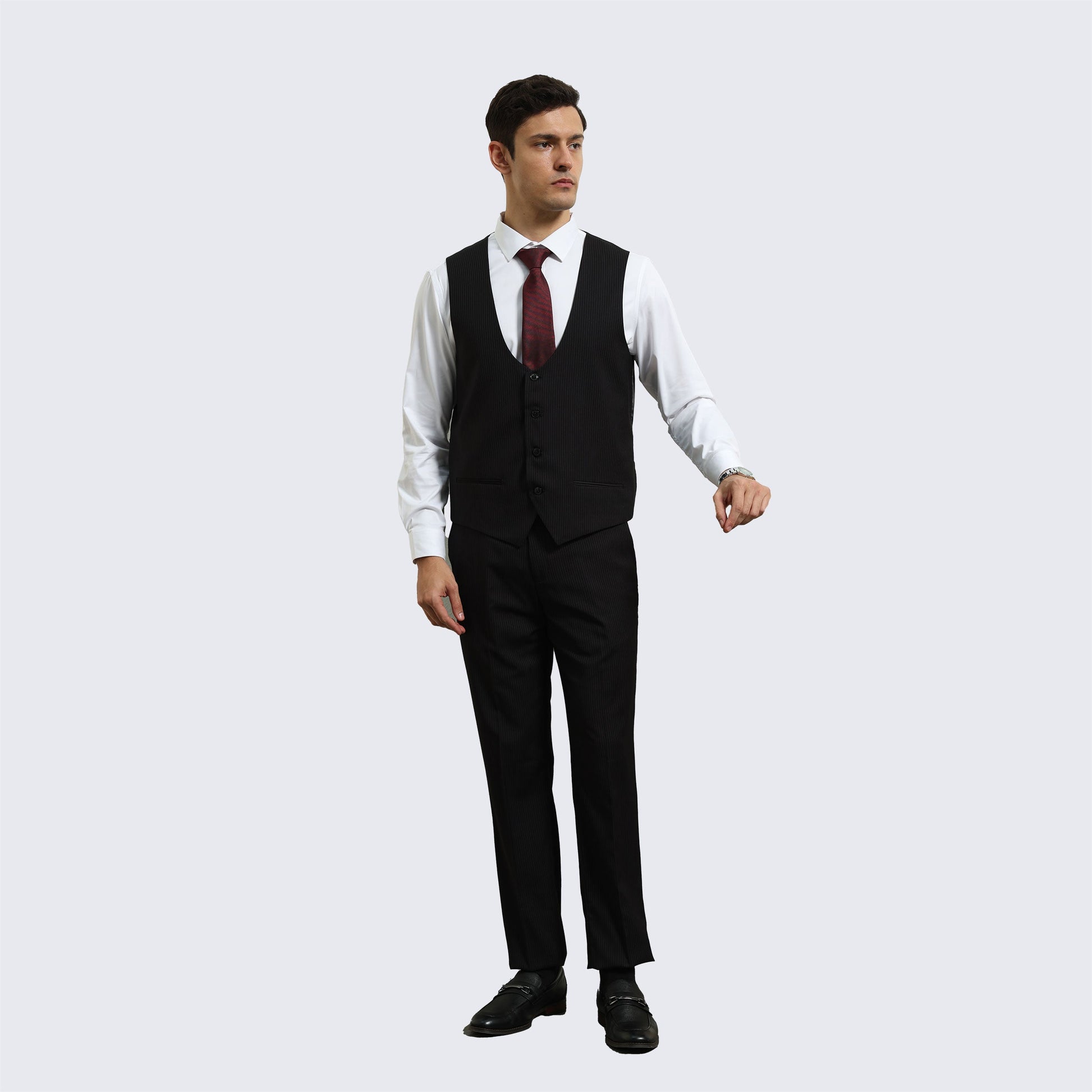 Black Pinstripe Three Piece Suit with Notch Lapel – Wedding & Prom