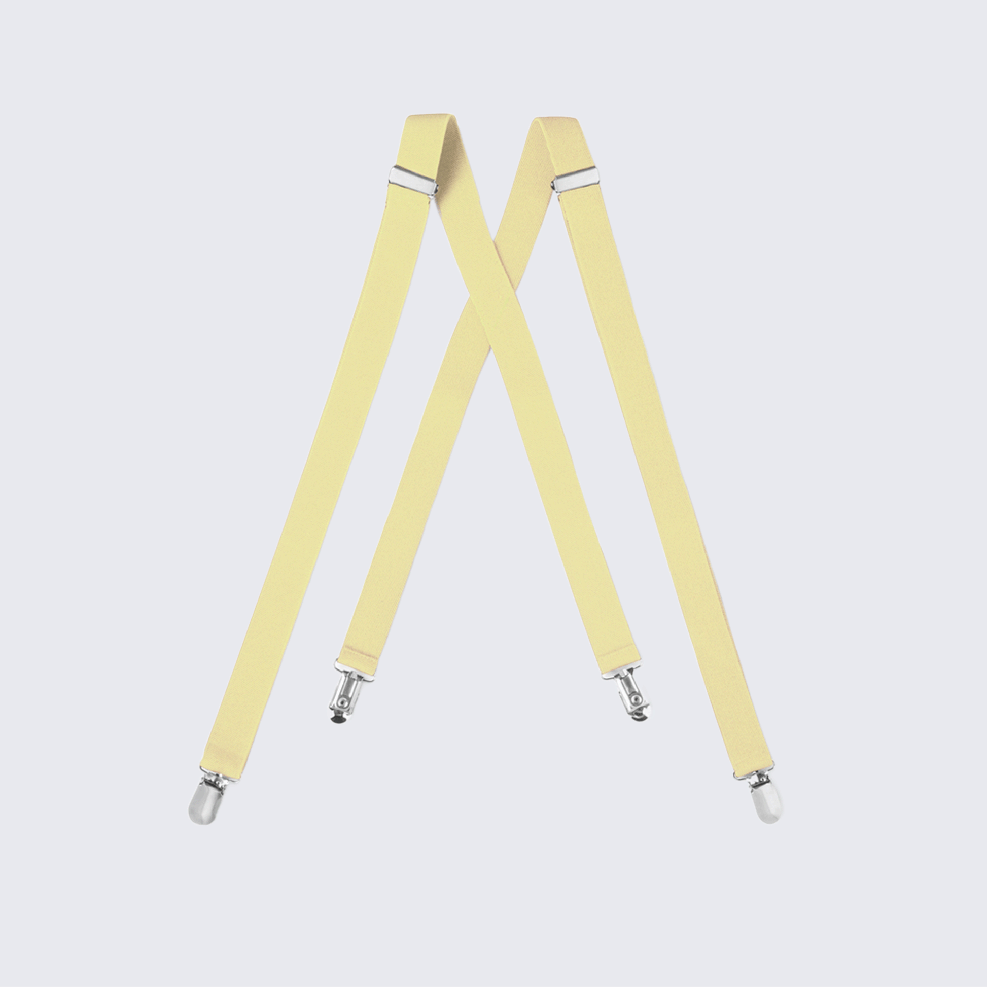 This yellow suspenders includes three clips that are sturdy and secure, with rubber teeth that will not tear or damage your child's clothing. Made with soft, child safe materials to ensure comfort. Adjustable Size 6M/4Y is recommended for children 6 months to 4 years old. Straps are adjustable in length from 13 inches to 19 inches. Size 5/16Y is recommended for children 5 to 16 years old. Straps are adjustable in length from 20.5 inches to 31.5 inches Item is nicely packaged in a see-through box, perfect for gifting.